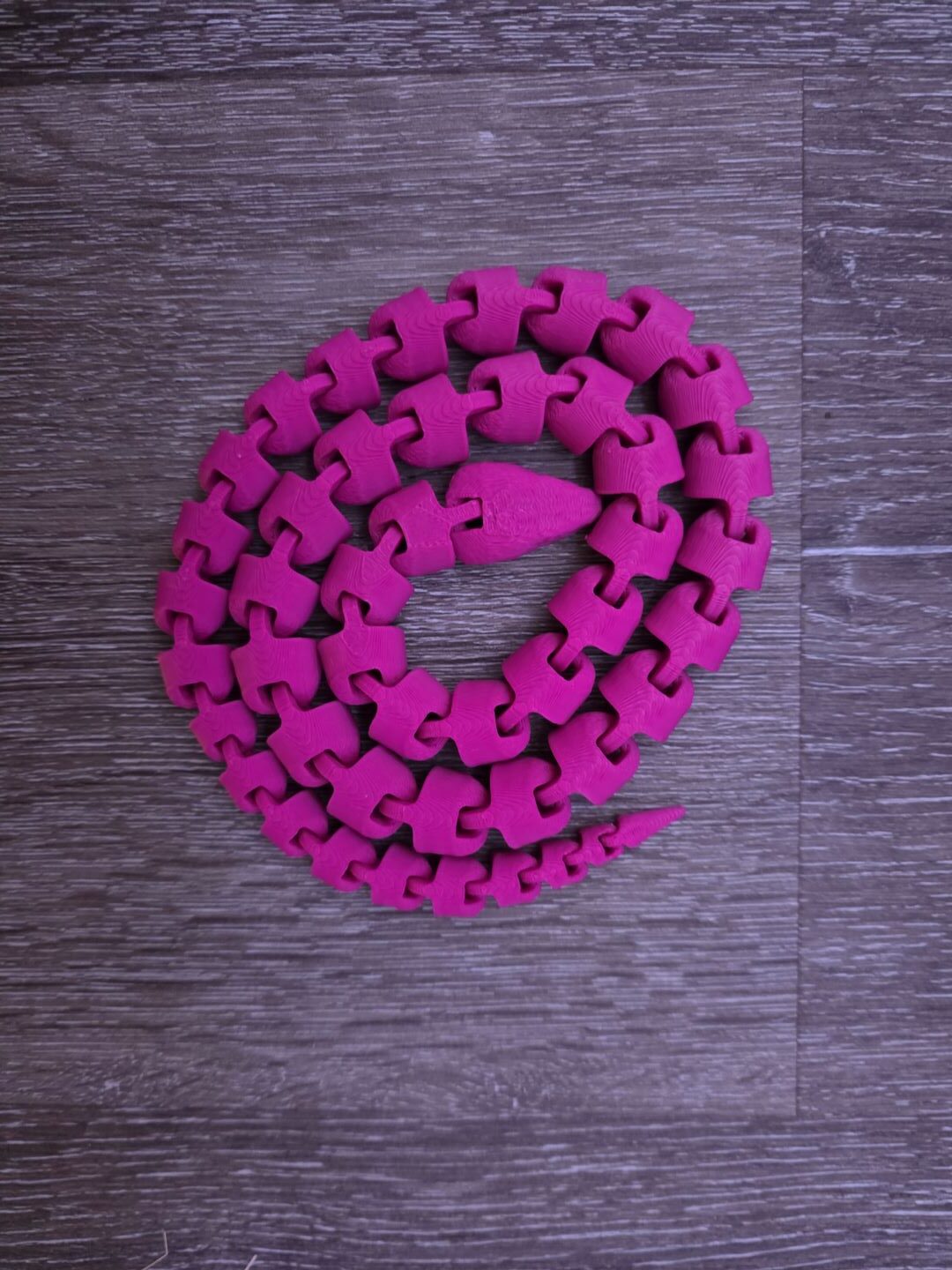 This is a 58.5″ long 3D printed snake.