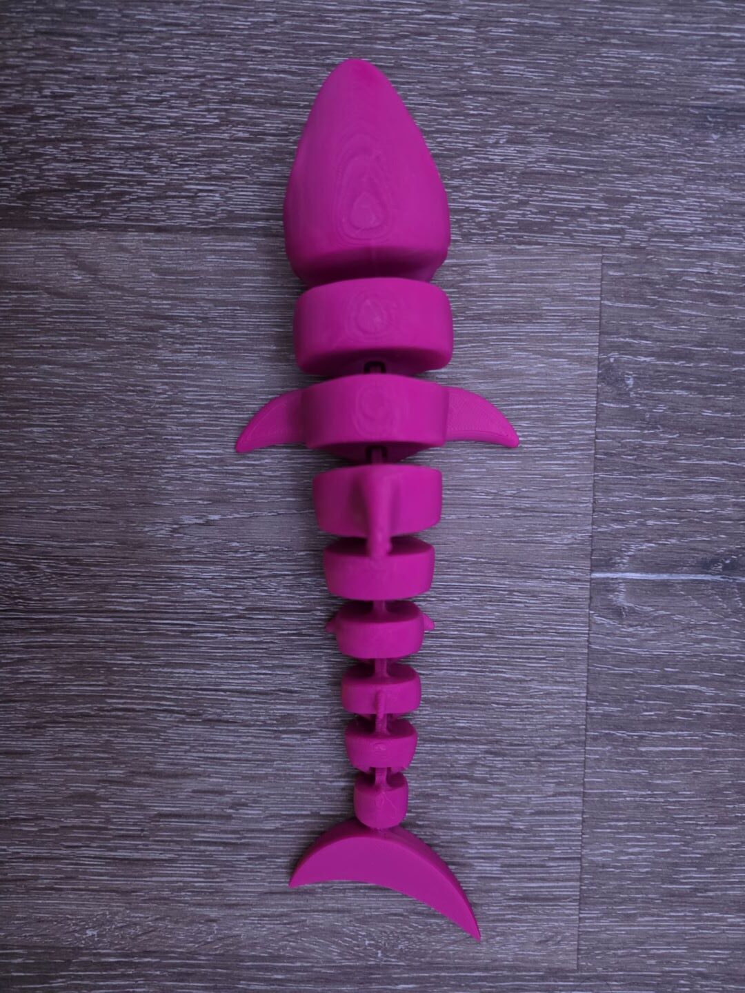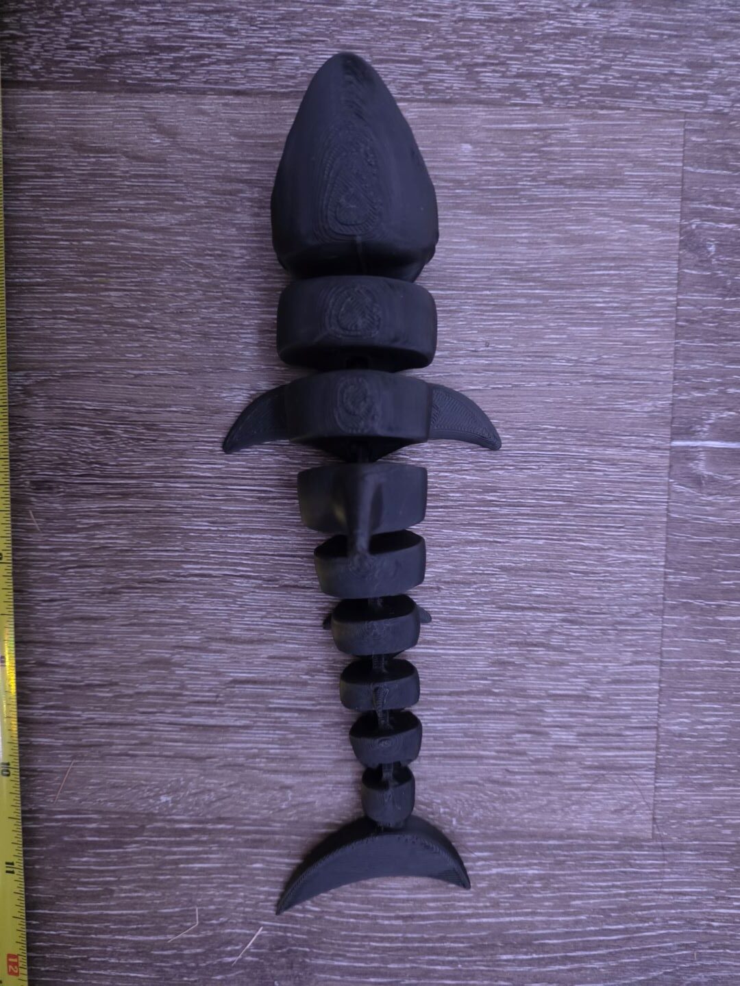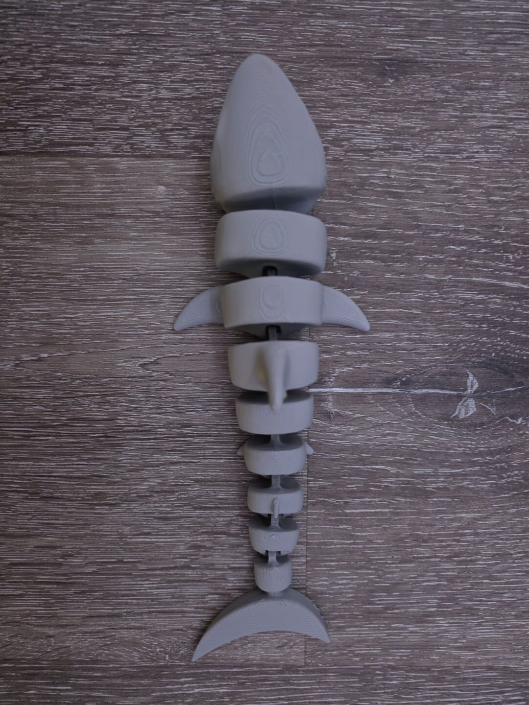 This is a 8″ shark. The bottoms fins and body moves freely.